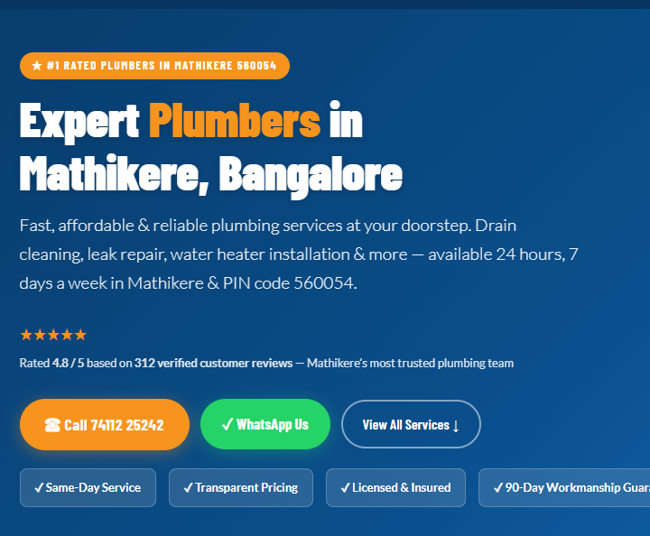 🚰 Expert Plumbers in Mathikere, Bangalore